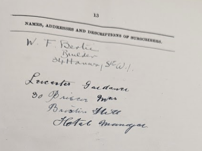 It was customary during a raid, for the police to request the members’ book. Many club owners tried to evade the law by claiming that it was a private club where only members were served alcohol. If this were true, police officers should find a well kept members’ book and all those persons inside the club should have corresponding entries in the records. When asked about the members’ book, Mrs. Meyrick claimed that it was at her house. Sergeant Goddard and Chief Inspector Morton were dispatched to no 27 Devonshire Street, W1, along with Mrs. Meyrick, to fetch it. Meanwhile, Leicester Gardener, facing the music alone, was questioned by Superintendent Martin and Inspector George Abiss. According to the police report, Mr. Gardner said,