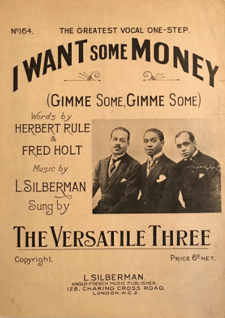 You might also want to hear ‘A-be My Boy’ as it might have sounded in it’s day https://www.youtube.com/watch?v=ziwKz8mh62w or ‘I Want Some Money (Gimme Some, Gimme Some)’ here https://www.youtube.com/watch?v=3gBR1FxhDAU
